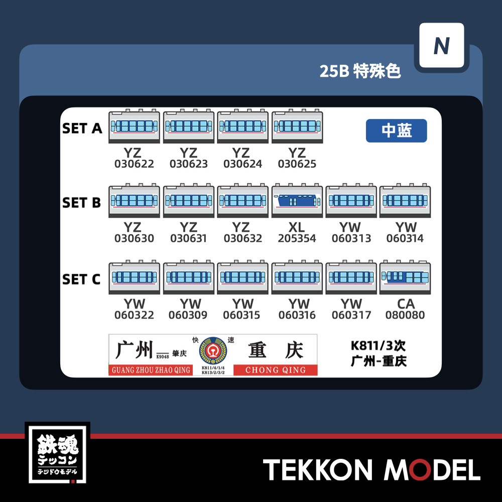 Nゲージ 長鳴 CHANGMING 25B型 客車 K811/3次 セットB (6両) 室内灯標準装備 2025年11月予定 (複製)