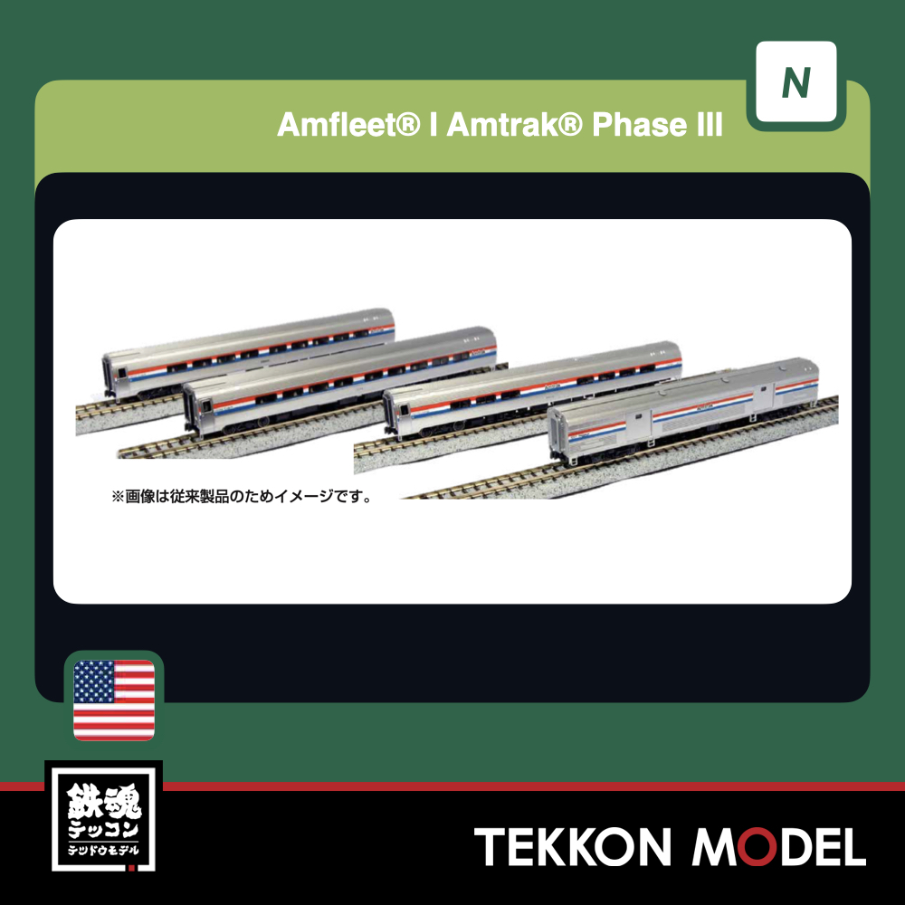 Nゲージ ホビーセンターカトー HobbyCenter KATO 106-8020 Amfleet® I Amtrak® Phase III Paint 4 Car Set 2026年8月予定