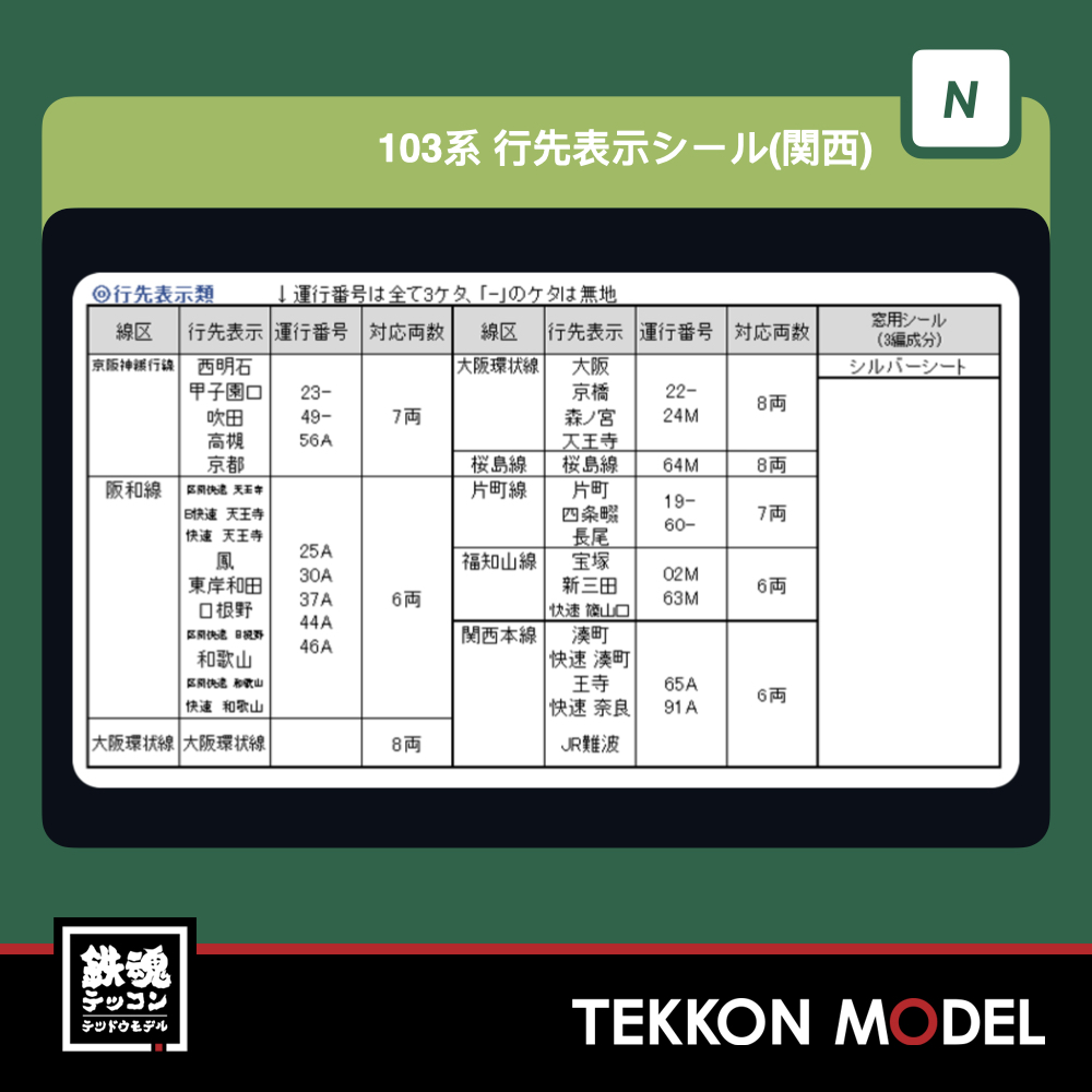 Nゲージ ホビーセンターカトー HobbyCenter KATO 28-239B  103系 行先表示シール(関西) 2026年4月予定