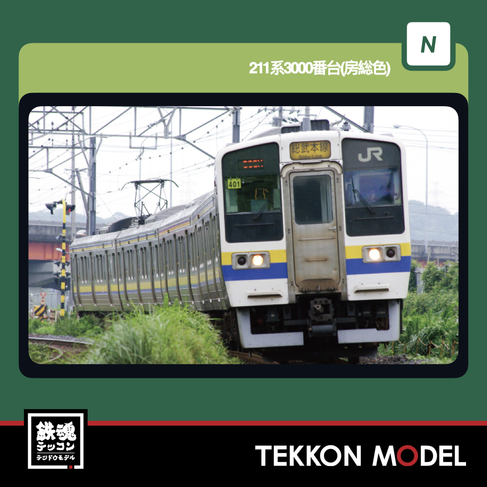 ●平成18~25年(2006~2013)の間、房総エリアで活躍した211系を製品化いたします。高崎車両センターの211系3000番台がグリーン車を組込み10両固定編成化される際に捻出された編成で、黄色と青の房総色をまとい、幕張車両センターに所属する113系の一部を置き換えました。抜擢から7年間に渡って房総エリアで活躍し、その後209系が房総エリアに投入されると長野車両センターに転属となり、房総地区での活躍を終えました。運行開始の翌年、14編成中9編成に集電効率向上のためクモハ211にシングルアームパンタグラフが追設され、2種類の形状のパンタグラフを搭載する異色の形態で活躍しました。