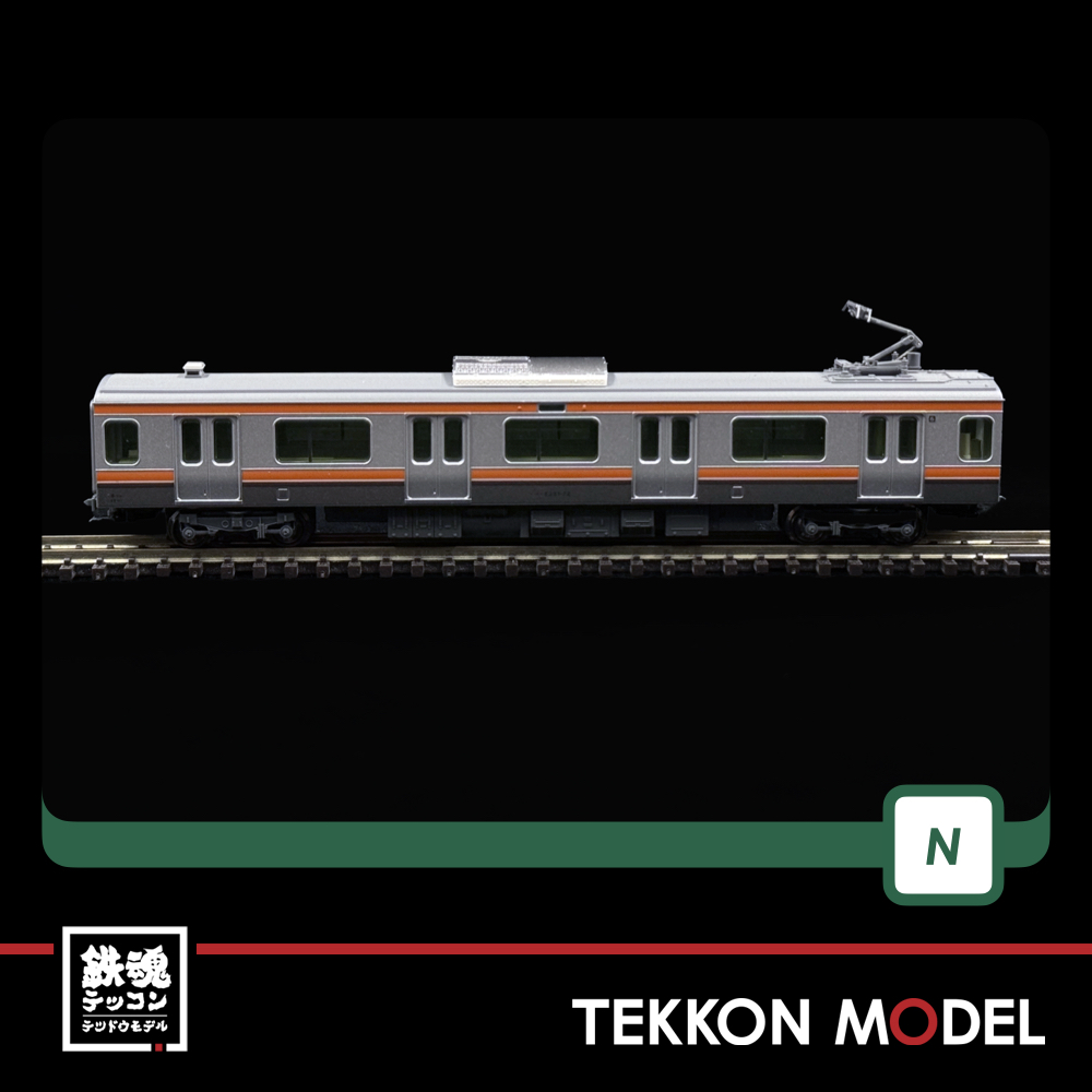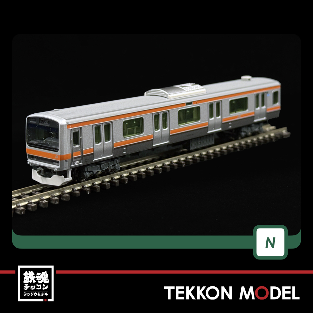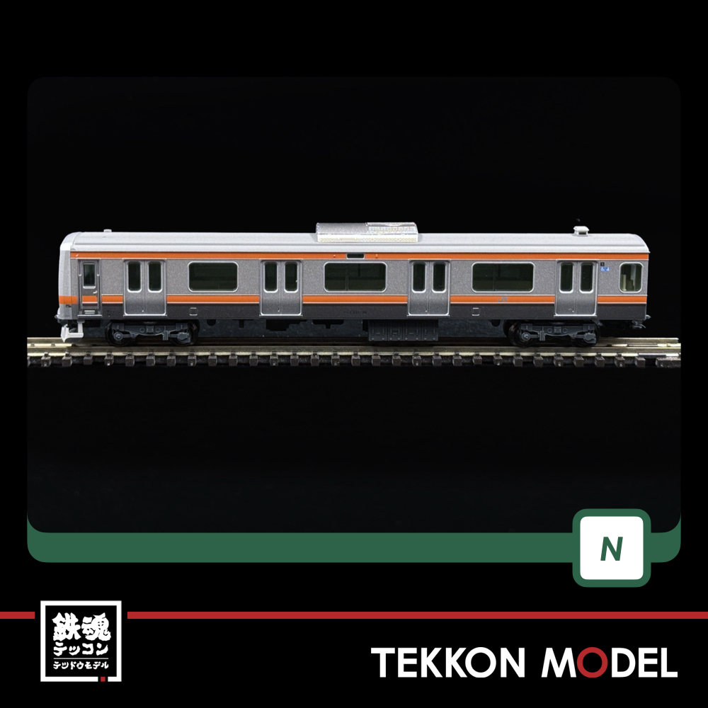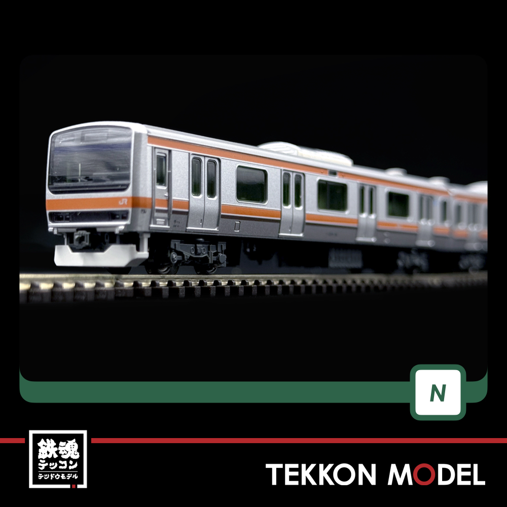 ②209系500番台と異なる銀色の前面、前面のJRマーク位置が帯の上辺に寄った外観を再現