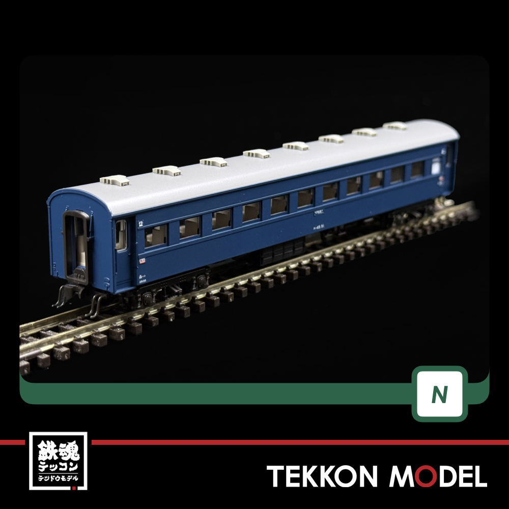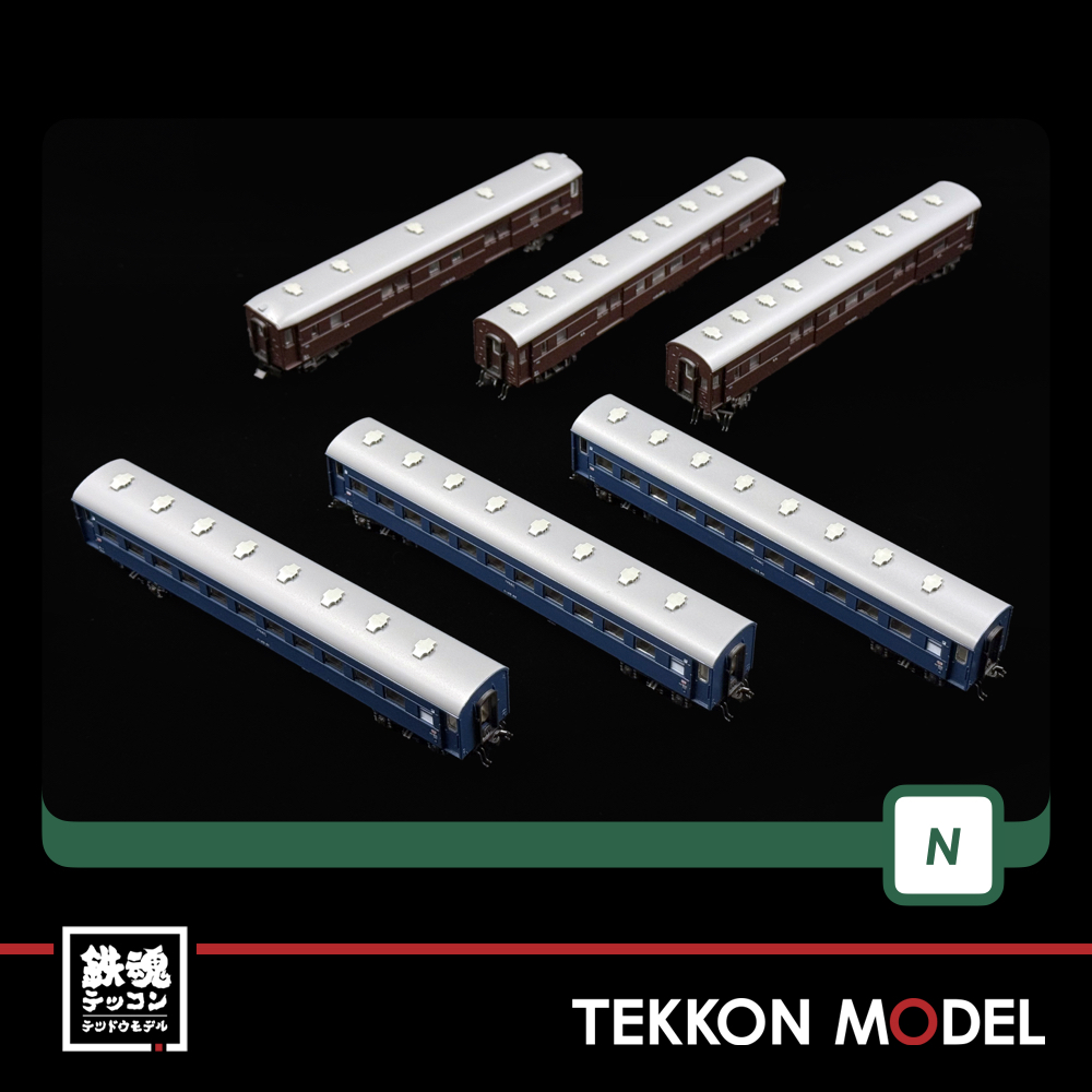 ②北海道向け酷寒地仕様のスハ45系客車は特徴ある歯車式車軸発電機を台車に表現、また床下機器も北国の車両では標準となる大形蓄電池箱を再現