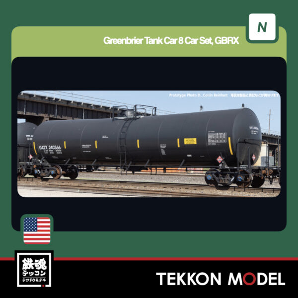 ①アメリカ合衆国の鉄道車両メーカーであるGreenbrier(グリーンブライアー)社が製造する最新のタンク貨車を1/160スケールで製品化