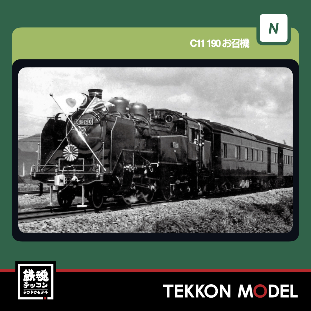 ◆緑色の色差しが入ったナンバープレートやロッドが特徴のC11 190号機を昭和41年(1966)のお召列車牽引時の仕様で製品化いたします。同時再生産予定の〈10-853 お召列車1号編成(昭和仕様)〉の牽引機としてはもちろんのこと、お召装飾の入ったきらびやかな外観はコレクションにもオススメです。
