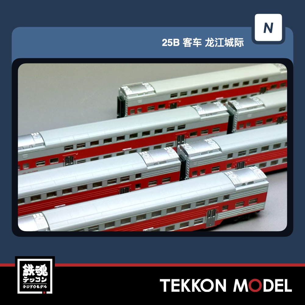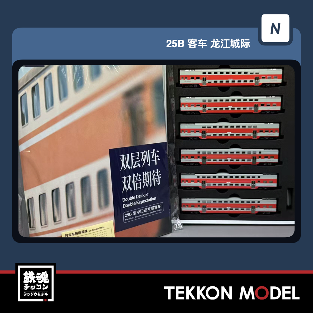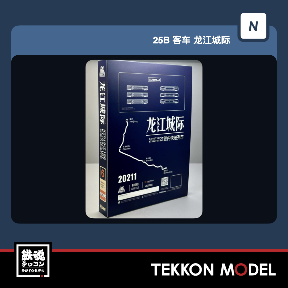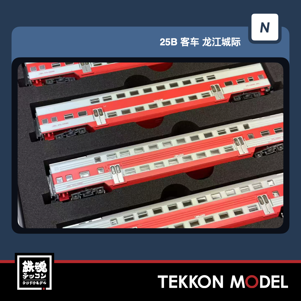 • 嫩江-齊齊哈尔-哈爾濱-牡丹江 • 2階建硬座車*3 補強筋付2階建硬座車*3 • 車番、形式なと表記は全車両印刷済み。 • 各車両ともナックルカプラー標準装備。 • スペシャルパッケージを採用
