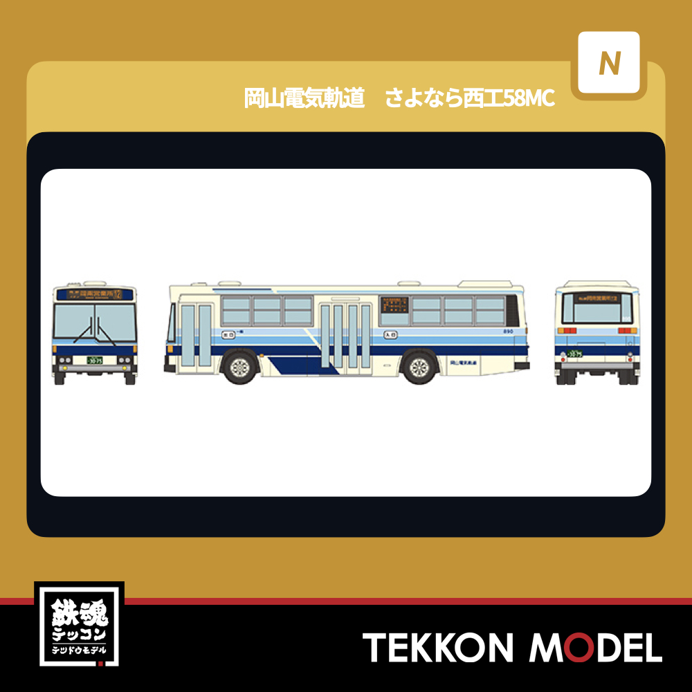 岡山電気軌道の路線バス(通称:岡電バス)は、岡山県岡山市に本社を置く事業者で、岡山駅や天満屋バスステーションを中心に、岡山駅近郊へ路線網を展開しています。岡電バスで活躍する西工58MCの890号車が、1990年1月のデビューから35年経ち、この度2025年10月末を持って、運行を終了することになりました。1983年排出ガス規制適合車(P-規制車)で稼働可能な岡山市内唯一の車両とのことで、丸型の前照灯、メッキバンパーの姿は、近年多くのバスファンにも人気の車種となっています。この度、2025年10月末の運行終了を記念し製品化致します。是非ご期待下さい。