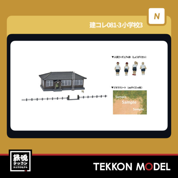 セット内容: 建物、門、小物、人間フィギュア×4、ジオラマシートA6サイズ×4、シール 本体サイズ(建物1個あたり): W135×H55×D75(㎜) PKGサイズ: W120×H160×D60(㎜)
