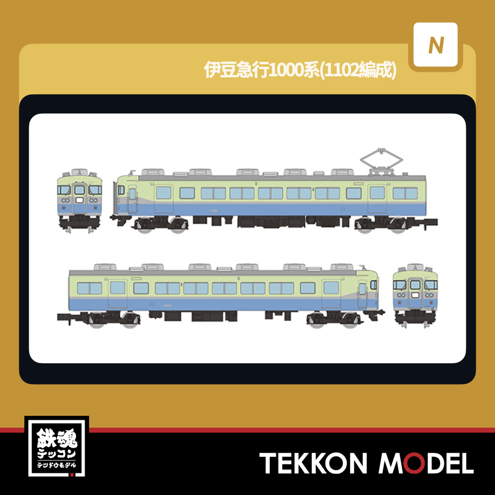 伊豆急行100系は、1961年の伊豆急行開通にあわせて製造された車両です。片運転台車のクモハ110・クハ150を基本に、両運転台車のクモハ100、グリーン車のサロ、半室グリーン車のクロハ、サロハ、私鉄唯一の食堂車・スコールカーのサシなど様々な形式が存在していました。1000系は100系を車体更新した車両で1979年に登場しました。今回は1990年ごろより冷房改造が施された車両を製品化いたします。今回発売の伊豆急行100系4両セットEと鉄道コレクション第33弾または同時発売の伊豆急行1000系を組み合わせることで6両の冷房車編成をお楽しみください。