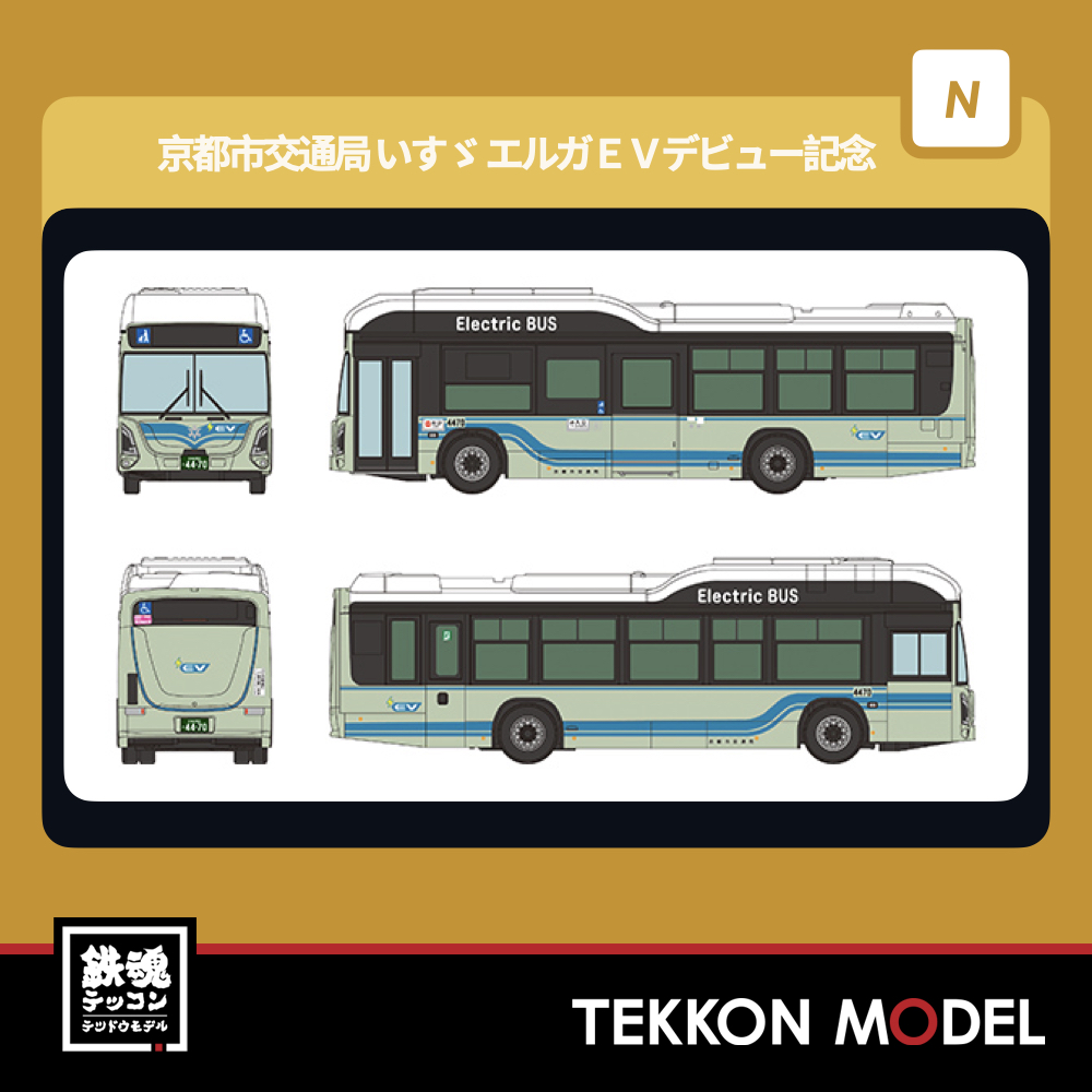 バスコレでは、2026年3月の運行開始が予定されている九条営業所のいすゞ エルガEV 4470号車を、デビュー記念商品として製品化いたします。